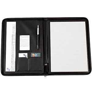 Aktovka so zipsom, vybavená vreckami niekoľkých veľkostí a linajkovým poznámkovým blokom, bez mechaniky. V prevedení imitácie kože, úprava matná.