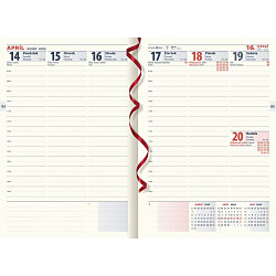 Týždenný diár s listami z krémového papiera vo fomráte B5 s hodinovým delením (7:00 - 19:00) obsahuje slovenské a české kalendárium, anglický preklad mesiacov a dní, informácie o štátnych sviatkoch všetkých krajín EÚ, prehľadný a plánovací kalendár (fond pracovného času), školské prázdniny, prehľad slovenských EČV, adresár. Ponúka dostatočný priestor pre písanie poznámok a pripomienok.