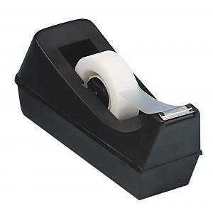 Stolový zásobník na lepiacu pásku rozmerov 19 mm × 33 m s nožom na odrezanie pásky. Dodávaný bez pásky. Farba čierna.