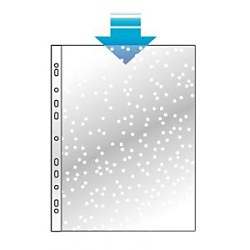 Priehľadný euroobal z polypropylénu. Otvor zhora, eurodierovanie, povrch matný, mierne pórovitý. Formát A4. Balenie 100 ks v sáčku.
