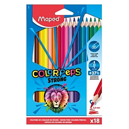 Pastelky trojhranné MAPED "COLOR'PEPS STRONG". Výborná krycia schopnosť. Pohodlne sa držia. Tuhy sú odolné proti lámaniu. ľahko sa strúhajú. Trojuholníkový tvar ponúka ľahké uchopenie a je ideálny pre deti, ktoré sú nadšené umením, ktoré chcú kresliť, vyfarbovať, zdobiť a obohatiť svoje kresby. Priemer tuhy 3,2 mm. Balenie obsahuje 18 ks.