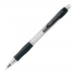 Plastová mikroceruzka s kovovým mechanizmom, transparentným telom, gumou a gumeným úchytom. Zasúvací hrot, tuha hrúbky 0,5 mm. Farba čierna.