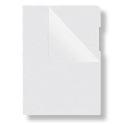 Priehľadný obal na dokumenty z tvrdého polypropylénu. Otvor zhora a po dlhšej strane („L“). Povrch lesklý mliečny, výkroj na ľahšiu manipuláciu, zaoblená horná strana. Formát A4.