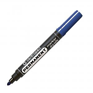 Permanentný popisovač s nevysýchajúcim atramentom (vydrží aj 14 dní bez vrchnáka) na alkoholovej báze, vhodný na väčšinu povrchov. Odolný voči vode, poveternostným podmienkam aj oderu. Hrot okrúhly, šírka stopy 2,5 mm. Väčšie balenie 10 ks v jednej farbe. Farba modrá.| Vlastnosti produktu | |