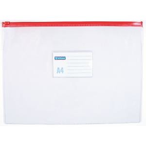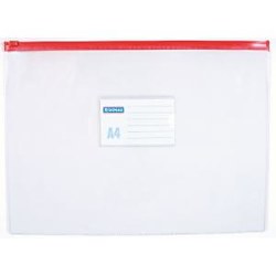 Plastový obal z PVC s uzatváraním na zips a štítkom na popis. Formát A4, rozmery 330x240 mm. Zips v mixe farieb.