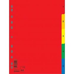 Rozraďovač formátu A4 vyrobený z tuhého polypropylénu. Jednotlivé stránky v rôznych farbách, multiperforácia na použitie rozraďovača v krúžkovom aj pákovom zakladači. Väčšie balenie 25 sád.| Vlastnosti produktu | |