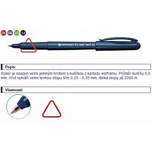 Roller v novom ergonomickom dizajne s jemným kovovým hrotom s guľôčkou z karbidu wolfrámu a nevysychajúcim atramentom (vydrží 14 dní bez vrchnáka). Šírka stopy 0,3 mm, dĺžka stopy 2200 m. Väčšie balenie 10 ks.| Vlastnosti produktu | |