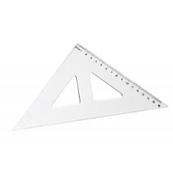 Transparentný pravouhlý trojuholník s kolmicou. Dĺžka 16 cm
