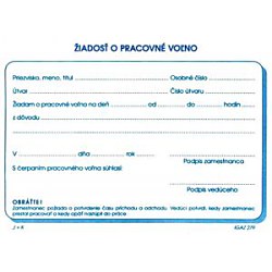 Žiadosť o pracovné voľno, blok formátu A6, 100 listov.
